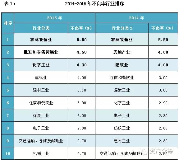 我们整理了21个行业2014-2015年的平均不良率,详见表1: