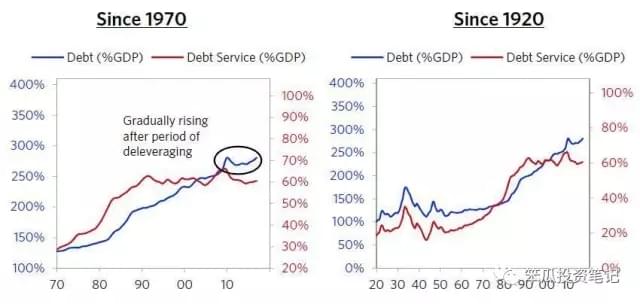 债务水平非常高,并且从之前的短暂去杠杆后又增加了杠杆。目前联储已经收缩了政策,但是利率水平还是很低,所以联储在经济下行阶段的宽松手段是非常有限的。同时我们已经回顾了之前的观察,美国目前处在历史上政治环境及其不稳定的周期。